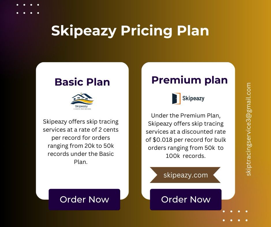Skipeazy is a top-notch skip tracing company that helps locate various individuals and businesses accurately. Skipeazy is backed by an experienced team of professional and carries out searches working with highly advanced tools and databases in order to offer updated and verified information at very reasonable prices. Skipeazy is dedicated to accuracy and fast turnaround times, always delivering results that depend on with confidence.If you want to skip trace your list must visit our website: www.skipeazy.com